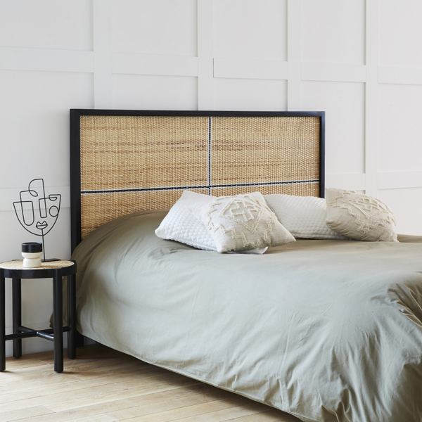 In Acacia wood and rattan, this headboard will stand out in your bedroom with its pretty cross drawn in black and white in the center. Designed for a two-person bed base