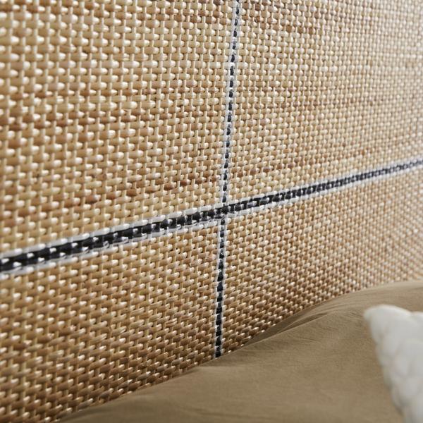The Acacia wood and rattan headboard will enhance your bedroom . The finish of the rattan weaving is impeccable. It is a decorative element that is both trendy and refined. The contrast between black and white creates a chic and luminous style. The Acacia wood and rattan headboard at the perfect height. It combines design and practicality since it slips between the bed base and the wall and does not need fixing.