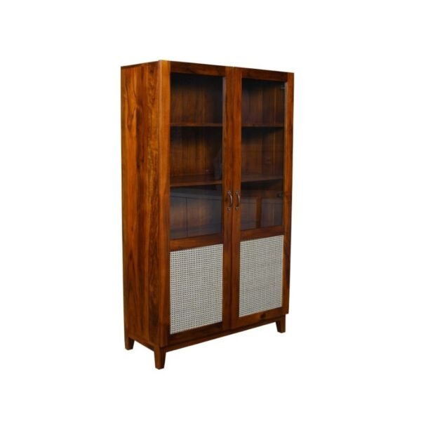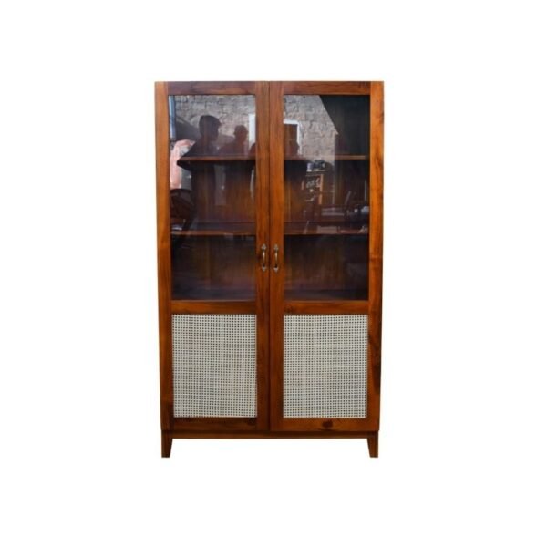This solid wood seesham crockery unit combines elegance and functionality, featuring a beautifully crafted glass door that showcases your finest dishes. The unit is enhanced with cane-fitted panels, adding a touch of texture and sophistication. With ample storage space, it allows you to neatly organize and display your crockery while keeping it protected from dust. The rich hues of the seesham wood bring warmth to any dining area, making it a stunning centerpiece. Its sturdy construction ensures durability, while the classic design complements various interior styles. Whether for everyday use or special occasions, this crockery unit is a perfect blend of beauty and practicalit