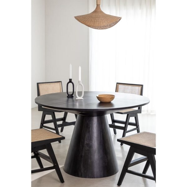 The Round Mango Wood Dining Table Weymar will become the main element in your living room or kitchen. A table made of mango wood, a material that makes it a resistant and durable element thanks to the nobility of its wood. Its round shape stands out, which facilitates socialising and conversation among the guests, and its spectacular and modern design with an original conical base, with which you will make the most of the space of your stay and where you can gather up to 6 people.